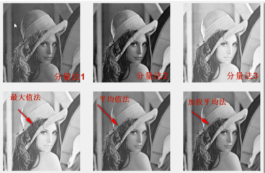 将彩色图像中的三分量亮度求平均得到一个灰度值。