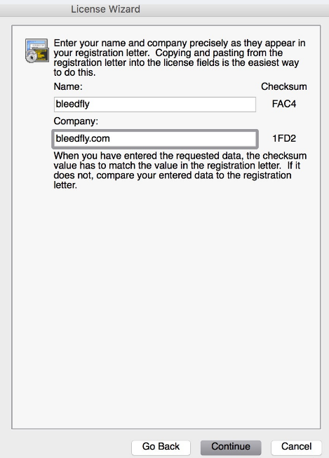 3. Name:输入bleedfly Company:输入 bleedfly.com 。