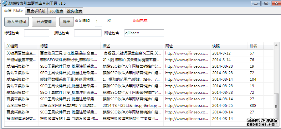 麒麟搜索引擎排名查询工具不仅可以查询关键词的排名,还可以让企业更全面地了解这些关键词目前已经被哪些网站排名或收录,哪些网站属于高质量、高权重的站点。当然,这些站点包括(企业站点、行业站点、分类平台、论坛、博客等。),这不仅可以了解他们自己的情况,还可以查询他们的同行的排名,并知道他们的同行推广了哪些网站。任何从事网络营销的企业或团队都可以使用该软件。