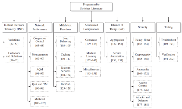 下图显示,可编程网元的研究在网络遥测、性能优化、加速卸载、安全等方方面面都有覆盖。对这一领域感兴趣的读者,也可以将这张提作为开启深入学习研究之旅的导航图。