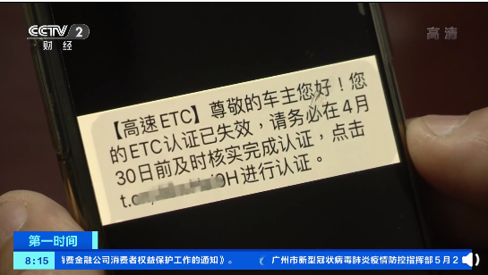 据央视财经等报道,四川巴中的冯先生手机收到一条短信,提醒他的 ETC 账户会在 4 月 30 日内失效。冯先生按照链接页面要求,输入了自己的姓名、身份证号码、银行卡号、密码、手机号提交。然而,当他再次输入手机验证码进行提交时,短短几秒钟,银行卡内的钱,就被迅速盗取了。