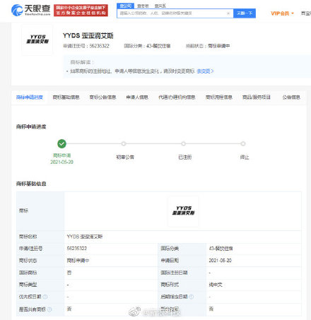 国际分类为餐饮住宿】天眼查App显示,近日,瑞幸咖啡(中国)有限公司申请注册“YYDS歪歪滴艾斯”商标,申请注册号为56235322,国际分类为餐饮住宿,目前商标状态显示申请中。