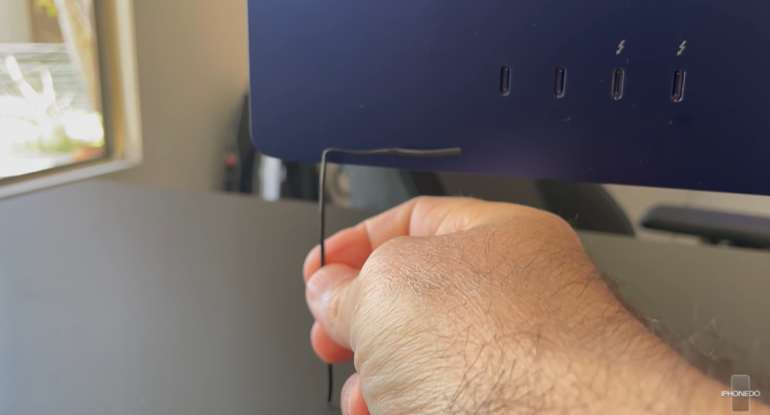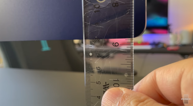 油管 UP 主 iPhonedo 在上周末发布了一个视频,他发现自己的 M1 iMac 向一侧倾斜,并且用尺子量了一下,发现两侧高度确实有差距,而且比较明显,大概有四毫米。
