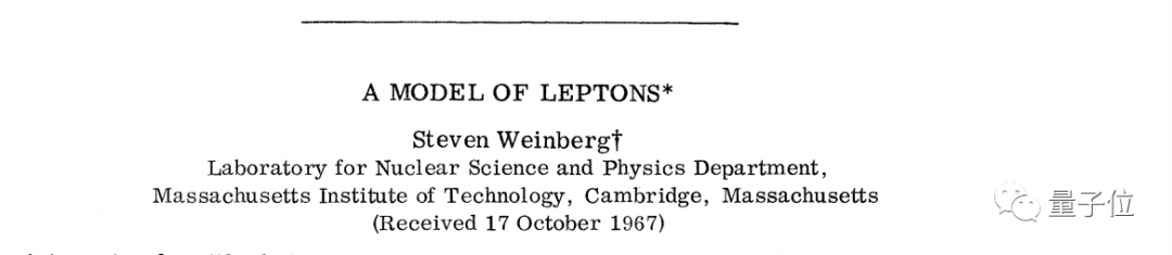 正是 MIT 任教的那一年,温伯格提出了统一电磁作用和弱相互作用的模型,现在称电弱理论,并在 Physical Review Letters 上发表,论文只有三页纸。