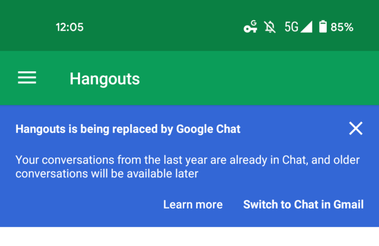 近日,Hangouts 环聊发出提醒,宣布即将停止服务,并建议用户转移到 Google Chat。