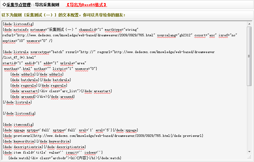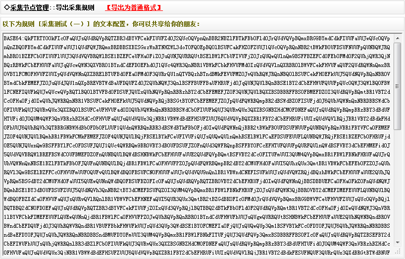 这里默认导出的编码格式为base64编码。如果单击“导出为普通格式”按钮后,可显示采集规则的普通文本格式,如(图3)所示,