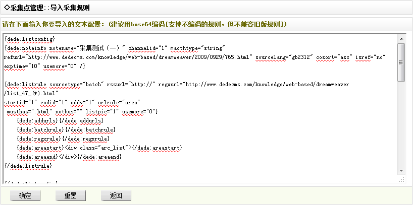 “导入配置”和“导出配置”:单击这两个按钮,可分别把写好的采集规则导入和把写好采集规则导出,下面介绍一下如何进行具体的操作及注意事项。
