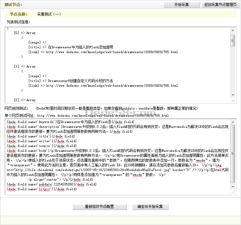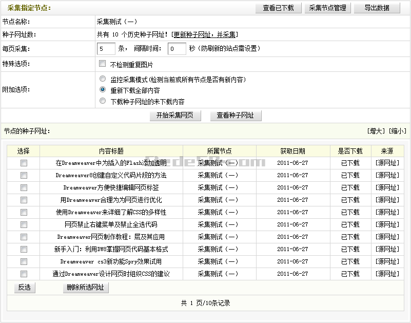 “采集”:单击这个按钮,将会进入“采集指定节点”界面,如(图7)所示,