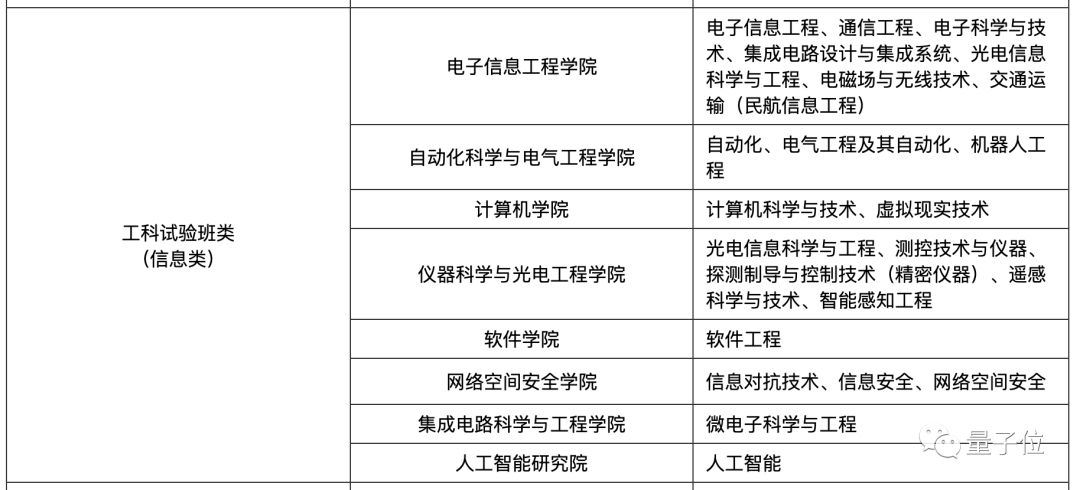 电子信息工程学院、自动化科学与电气工程学院、计算机学院、仪器科学与光电工程学院、软件学院、网络空间安全学院、集成电路科学与工程学院、人工智能学院。