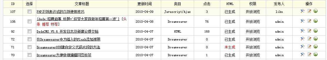 选择一篇Html栏目下的文章,点预览(右边的那个绿色小球)
