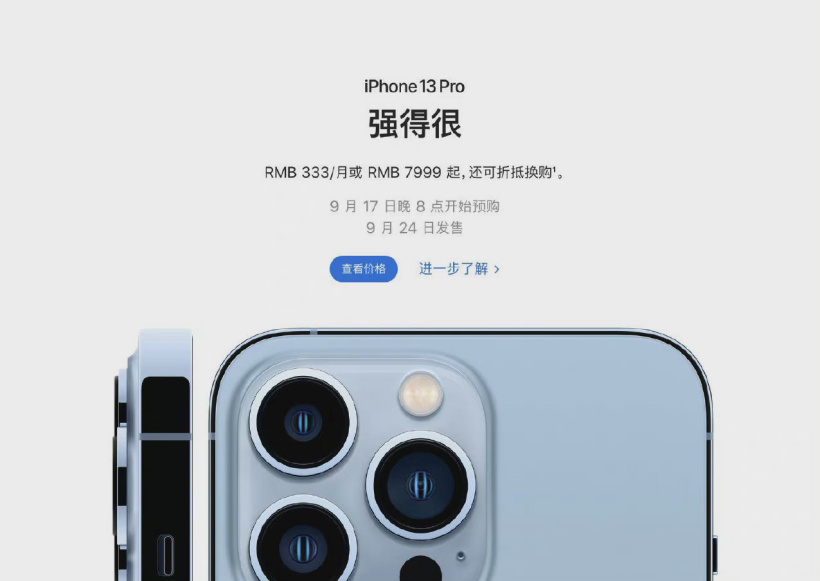 苹果在今日凌晨的 2021 秋季新品发布会上正式推出了 iPhone 13/Pro 系列手机,售价 5199 元起。苹果也在官网放出了新品的宣传语,美国官网为“Oh.So.Pro”,在中国大陆翻译为了“强得很”。
