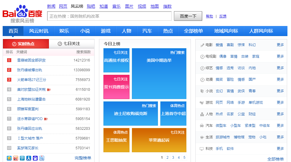 比如今天的热点事件我们打开百度搜索风云榜来看一下。
