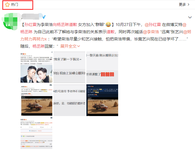 我们在微博搜索关键词:孙红雷向杨丞琳道歉