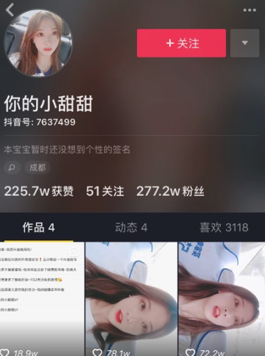 抖音成都小甜甜个人资料: 抖音昵称:你的小甜甜