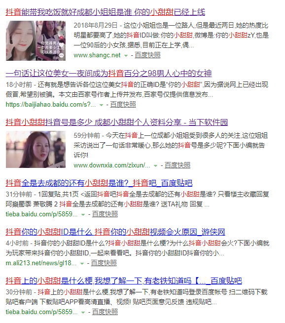 毫无疑问。众人议论的是抖音,小甜甜,火了。甚至有很多人在蹭热点拍视频,以求博得众人眼球。