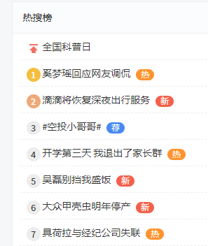 每天都有新鲜的事件发生,今日微博热搜的奚梦瑶回应网友调侃、“开学第三天,我退出了家长群”,还有百度风云榜的新版海尔兄弟造型曝光、韩女星朴恩惠离婚事件引发网友关注,还有微信热点,知乎热议等等热门事件信息每天都是人们关注的大热点。