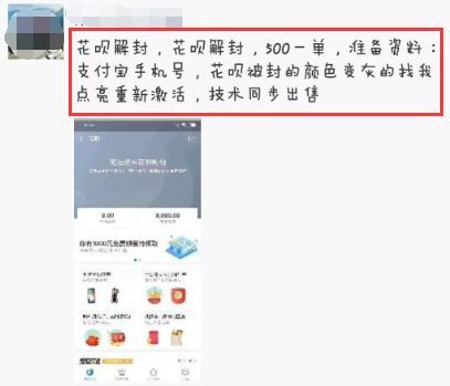 于是他们就弄出来一个花呗解封的黑科技来钓鱼,声称自己有有内部技术可以解封,在朋友圈以及网络上散播花呗解封技术,只需要800块。