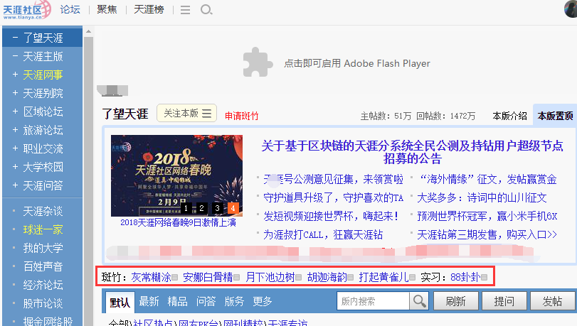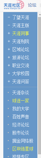 国内知名的论坛相信大家都是知道的,天涯论坛,这些板块都设置了相关关键词,每一个板块都有详细的说明。
