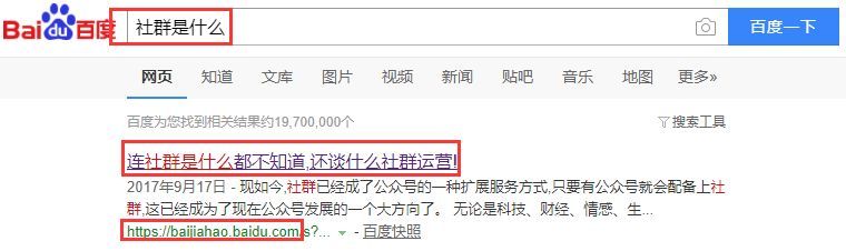 比如我们打开百度,搜索:社群是什么?