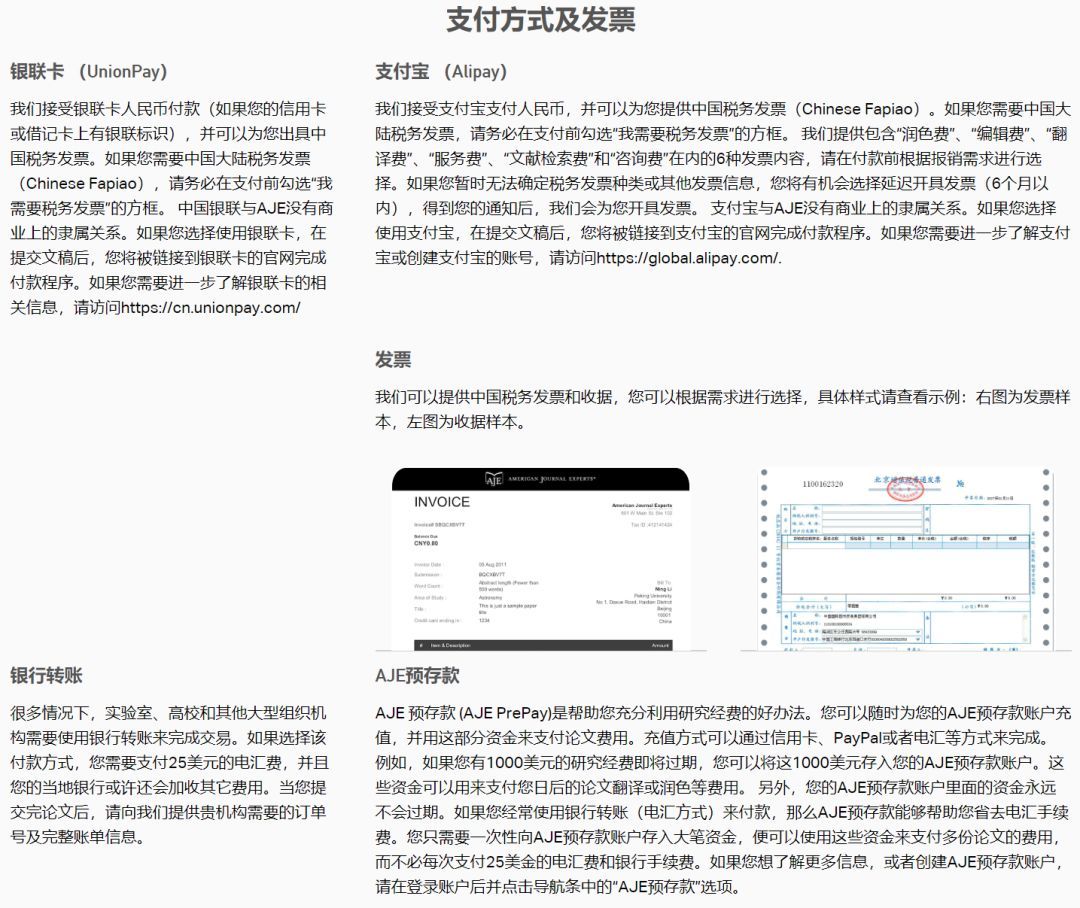 可能有朋友担心国外机构交流不便或者只能通过信用卡付款导致大家不愿意去国外机构进行润色,其实国外论文润色公司大部分,同样可以提供中文服务(也可以通过邮件以中文和他们直接联系)和支付宝或网银付款,还提供发票,在下文中有介绍。