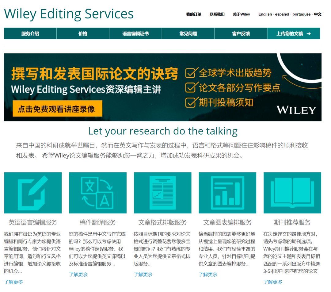 Wiley为自己的基本润色提供保证:只(英文版本中有个Alone,中文没有) 因语言问题被杂志拒稿,免费重新编辑润色。