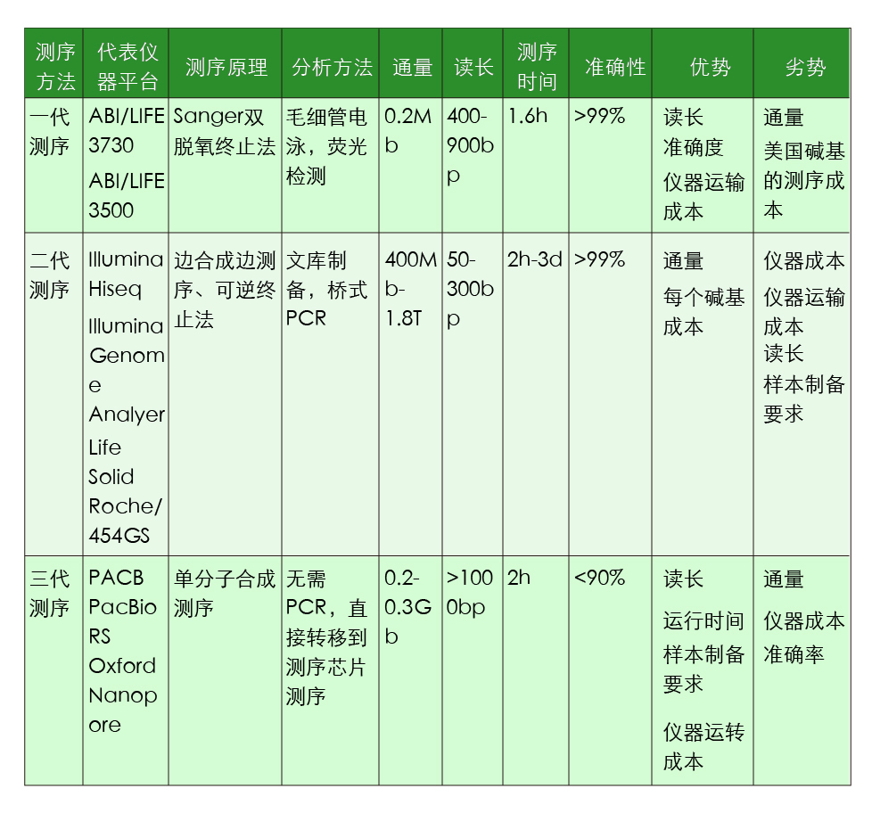 表2.基因测序三代技术及仪器平台对比
