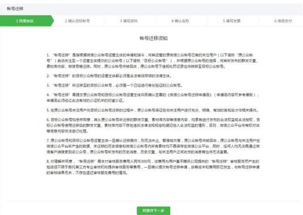 接下来就按步骤一步一步操作即可。审核通过后 最快2天粉丝就全部迁移过去了。一般是资料全部审核过。第三方认证机构电话核实数据。通过过后 第三天粉丝与数据全部迁移到目标公众号上。大功告成。