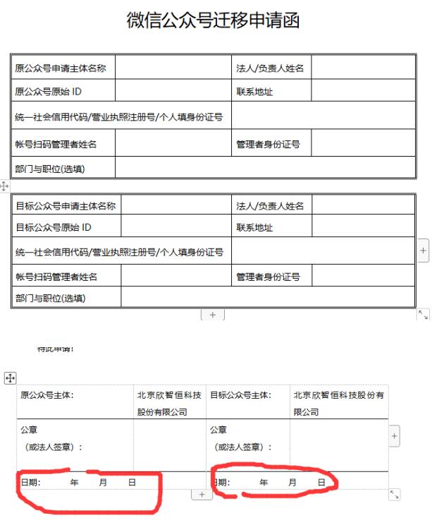 下面图就是你要下载下来要写的公众号账号迁移申请表: