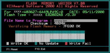 当出现(下图)的画面时就到了更新BIOS成功的最后一步了。AWDFLASH程序将在屏幕的最底部提示你,按下F1键将重启计算机(热启动),按下F10键将结束此程序。