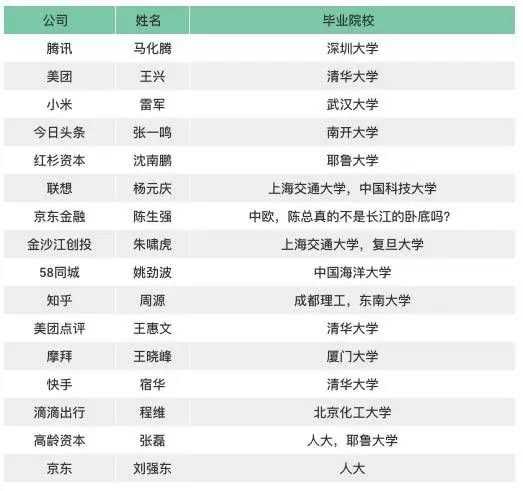 不单如此,京东的刘强东是宿迁高考状元,美团的王兴是保送进的清华,小米的雷军2年修完4年本科学分。还有不在饭桌上的百度李彦宏(北大)、巨人史玉柱(浙大)也都是高考状元。