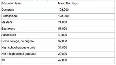 Table 1: Mean Earnings by Highest Degree Earned, $: 2009 (SAUS, table 232)