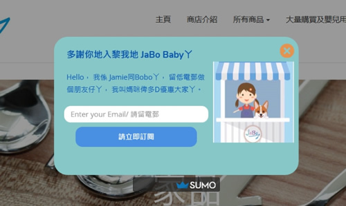 最近留意了某个卖 BB产品的网站,其中一个倒印象颇深刻,它的产品的描述都会令你看到整个画面,而其中收集 Email 的文字非常深刻,这倒挺有意思的。