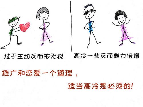 在感情当中高冷一些,被动一些,别人会觉得哇塞,他/她好有魅力!但如果过于主动,反而让人们怀疑你的动机,失去新鲜感。上赶着爱别人,更容易被伤害。