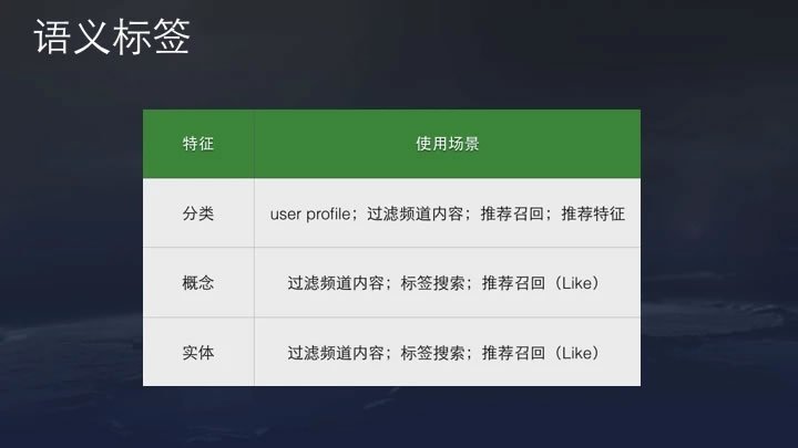 目前,隐式语义特征已经可以很好的帮助推荐,而语义标签需要持续标注,新名词新概念不断出现,标注也要不断迭代。其做好的难度和资源投入要远大于隐式语义特征,那为什么还需要语义标签?有一些产品上的需要,比如频道需要有明确定义的分类内容和容易理解的文本标签体系。语义标签的效果是检查一个公司NLP技术水平的试金石。