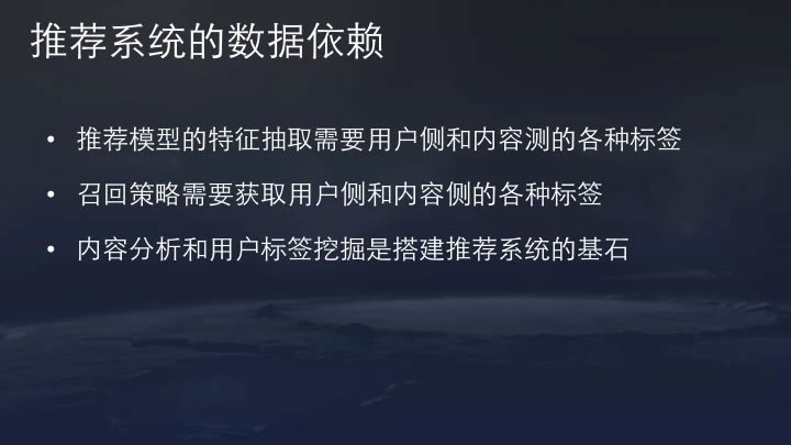 内容分析和用户标签是推荐系统的两大基石。内容分析涉及到机器学习的内容多一些,相比而言,用户标签工程挑战更大。