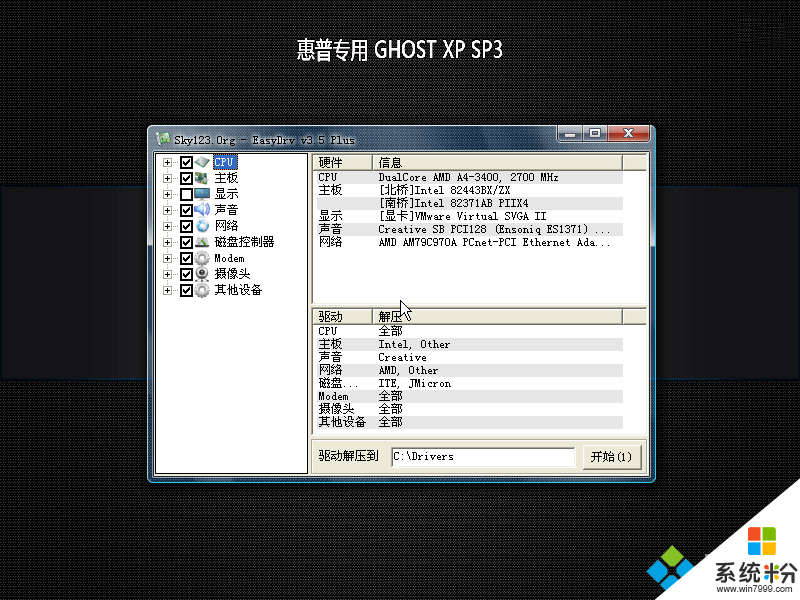 8、更新智能驱动选择工具及配置文件,更好的支持硬件检测及自动解压驱动并安装;