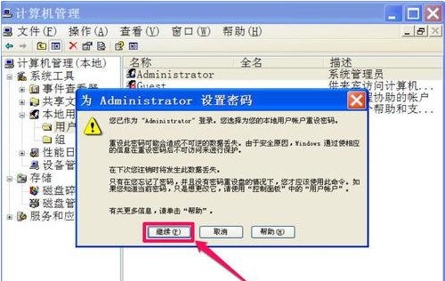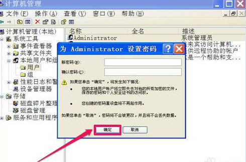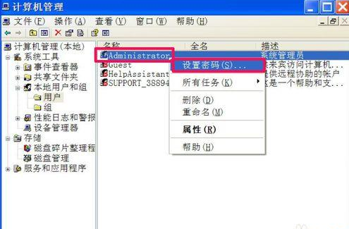 2.是进入计算机管理的用户中,同样,在设置密码时,设置为空即可: