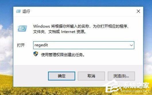 2、这时会打开运行窗口,在窗口中输入命令regedit,然后点击确定按钮;
