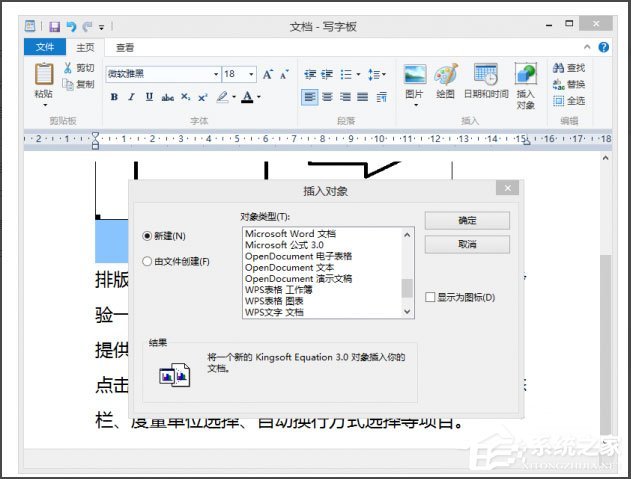 2、通过插入对象功能,写字板可以直接调用系统中已经安装的金山公式编辑器、微软公式编辑器、微软Office各大办公组件、金山各大办公组件、OpenDocument图文表演示等组件,让高级办公软件为自己“打工”。这样就极大地丰富了写字板文档所包含的内容。