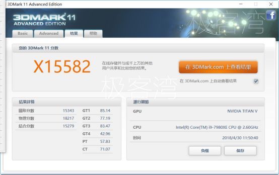 相比TTXP的分数几乎没有差别啊...这其实已经到了P分的瓶颈,因为P分和CPU关系比较大,也就是说这里7980XE已经是瓶颈了……