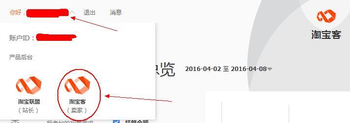 【4】登录之后就进入淘宝客后台,鼠标移动到淘宝帐号那里,然后点击“淘宝客卖家”。
