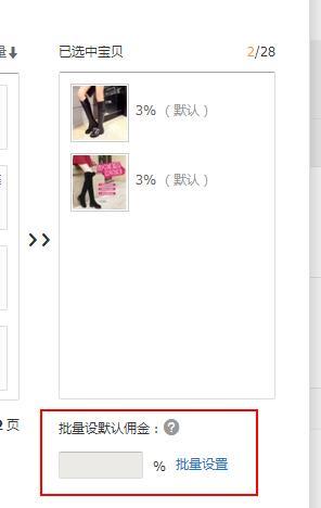 【9】选择之后,可以批量设置佣金,如果不设置的话,就是默认的那个,比如图上的那个默认就是3%,设置好之后点击“完成添加”