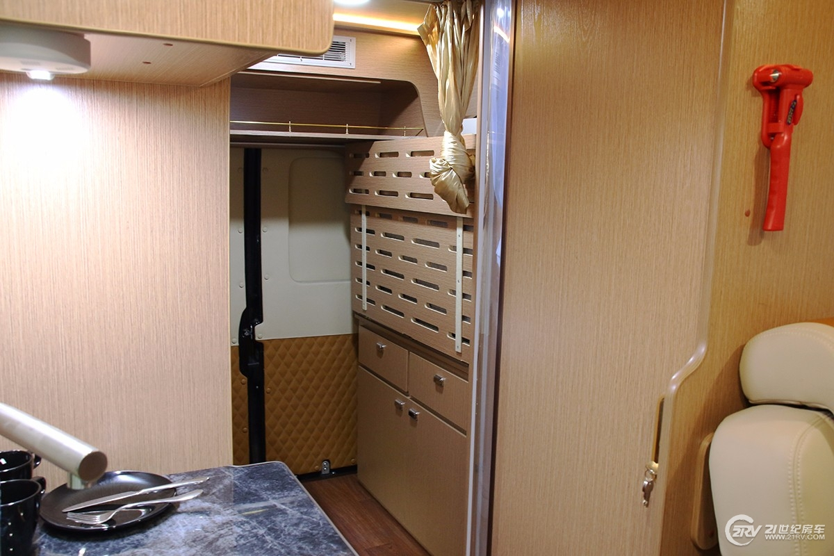 这款顺旅道奇公羊(参数|图片)房车采用传统的后置双人床布局,双人床并非固定床,而是通过木质床板折叠放置,兼顾旅行中尾部放置户外用品,比如自行式,登山的装备等等。尽管B型车的空间有限,依然设计了独立的卫浴间。因为该车可乘坐4人,相应卡座沙发采用双人单排设计,厨房位于中门附近,整体布局简单。