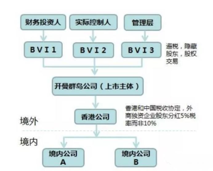 我们举个简单的例子来说明,境内公司A现拟香港上市,其在境外(开曼群岛)设立离岸公司,该公司今后即作为上市主体,首先,公司股东必须向有关部门申报及备案它于境外设立的BVI公司,随后股东持有的境内股权装入BVI公司,这样就将拟上市公司的企业性质由原来的内资企业变更为外商独资企业。
