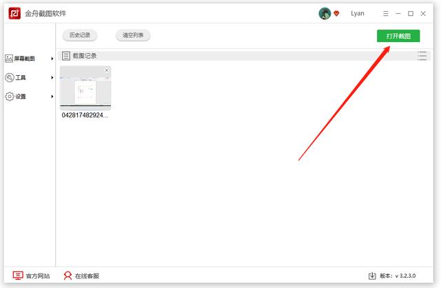 完成截图后,点击软件右上角的“打开截图”,可直接跳转到截图的保存路径中。