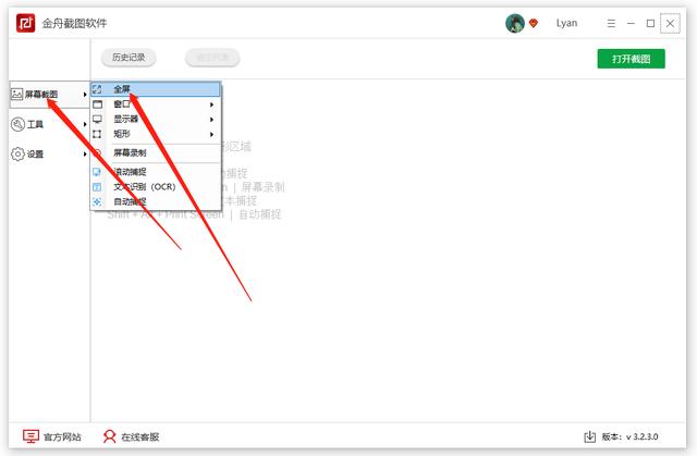 第一步、双击打开截图工具,选择“屏幕截图”-“全屏”,就可以了。