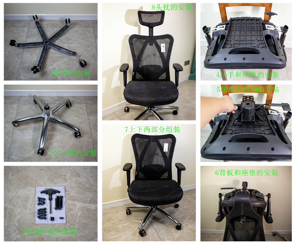 西昊SIHOOM57电脑椅的安装,不是太繁琐,只需要按照安装说明书一步一步的安装,就可以将电脑椅安装好。只是有些步骤的安装可能需要力气稍微大一点,然后仔细一点,就可以将座椅安装好。