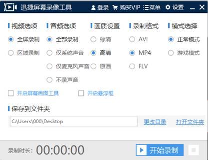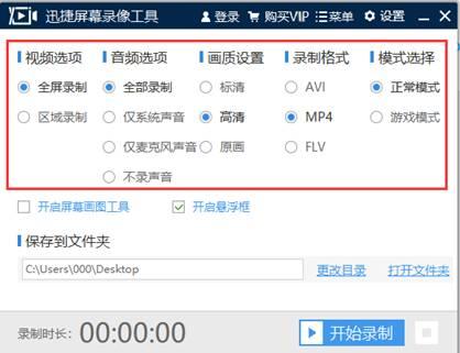 接下来咱们需要进行录制前的设置,自己设定一下,是需要全屏录制还是区域录制,是否需要将系统声音、麦克风声音录制下来,或者是干脆不要录制声音,只要屏幕画面。此外,画质也是可以选择的,可以是标清、超清或者是原画。