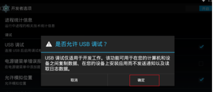 3,弹出的选项“是否运行USB调试”,然点击确定。