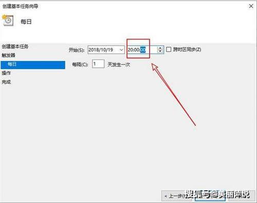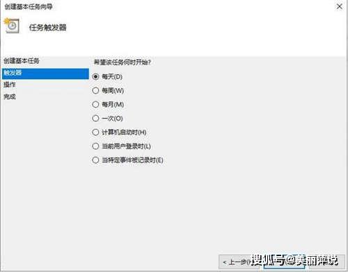 到触发器这里选择任务开始时间,这里以每天定时关机为例,点击下一步!